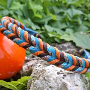 Handgefertigter Stirnriemen aus Fettleder mit dekorativem Paracord, Länge ca 45